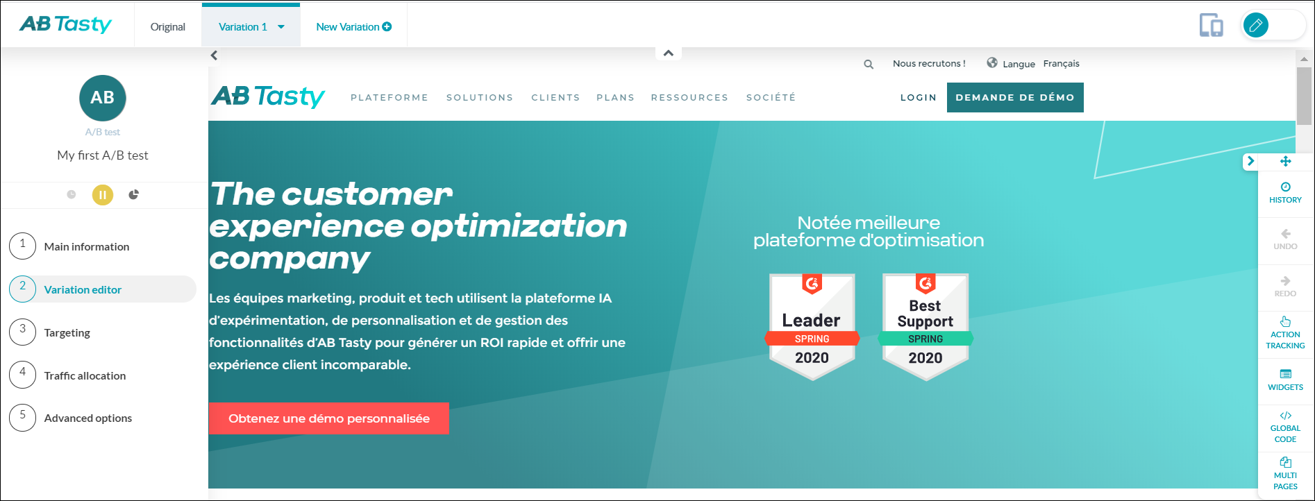 2. ABTasty のビジュアルエディターで、テストしたいバリエーションバージョンを作成