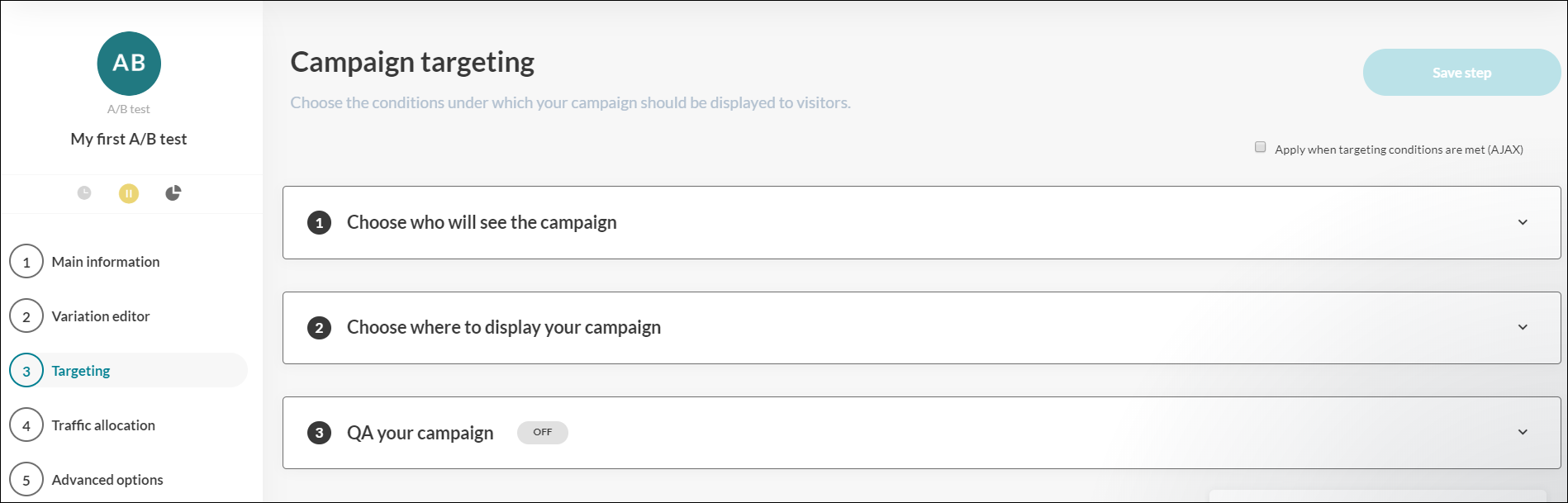 ABTasty でテストを設定するには 5 つのステップがあります。